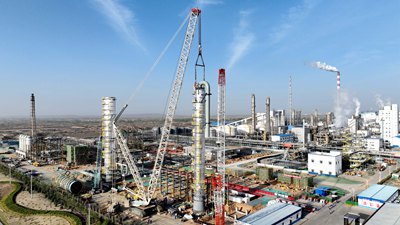 4�22�,由北京石油化工工程有限公司EPC總承包的陜西延長(zhǎng)石油榆林凱越煤化有限�(zé)任公�50�(wàn)�/年甲醇制乙醇�(xiàng)目首�(tái)塔器�(shè)備——脫脂塔順利完成吊裝作業(yè)并精�(zhǔn)就位�